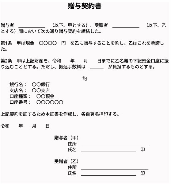 現金を贈与する場合の契約書の書き方